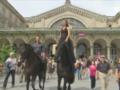 Привычную суету Восточного вокзала в Париже нарушили необычные гости. Двое актёров «Театра кентавра» разыграли сценки из истории о двух мифических существах. Помогли им в этом грациозные скакуны.
